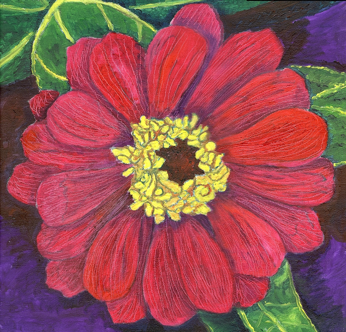 Watercolor painting of a flower with a bee on it, in my sister's garden