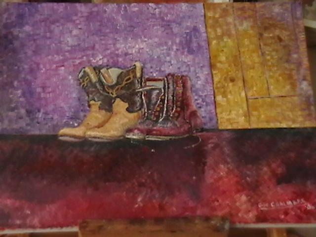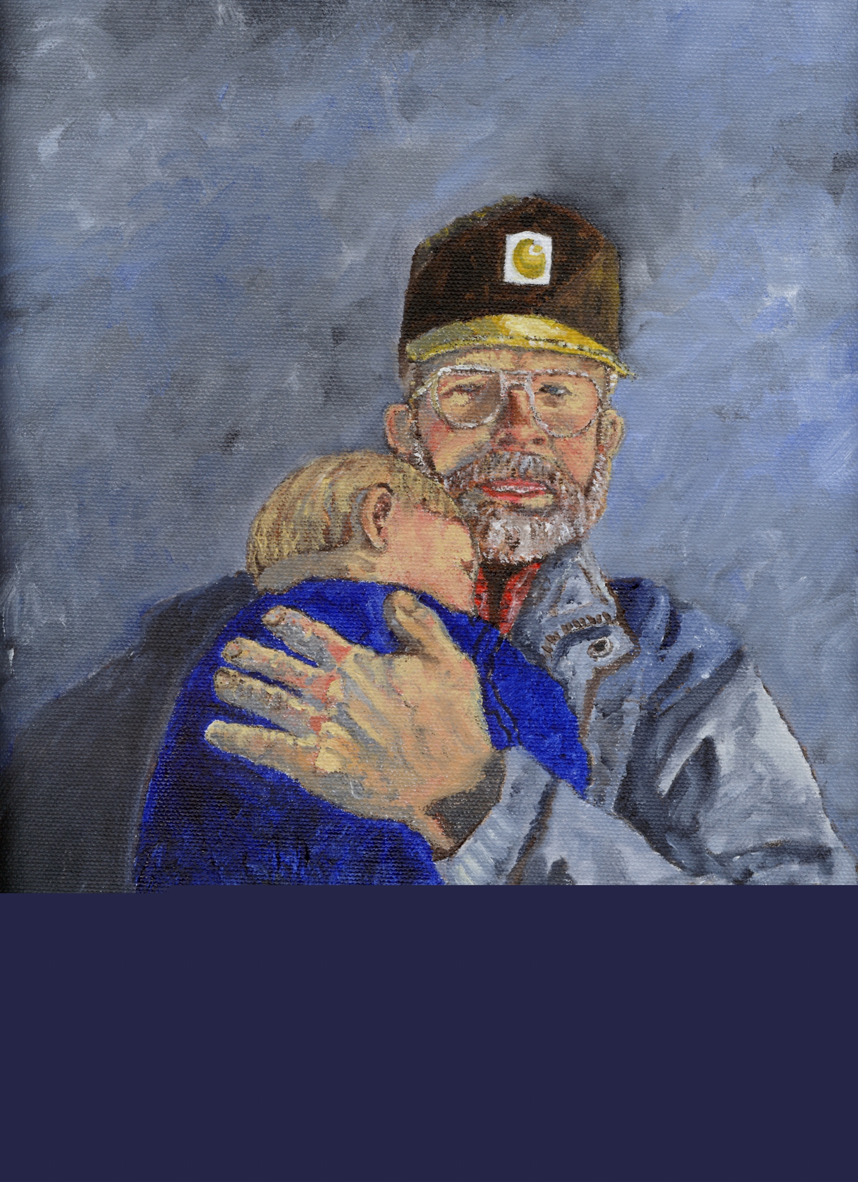 Oil painting of my dad holding our son around Thanksgiving 2003.