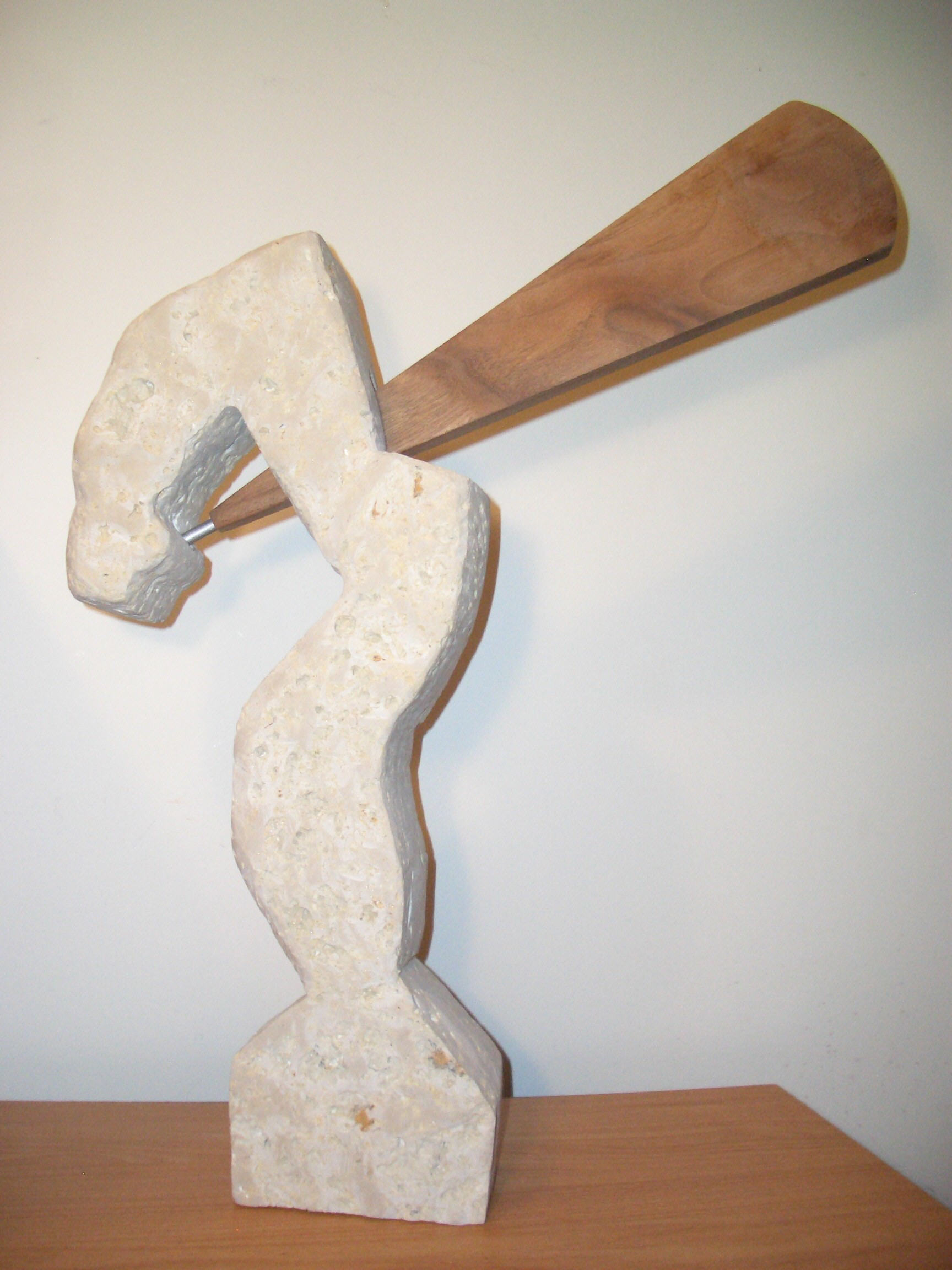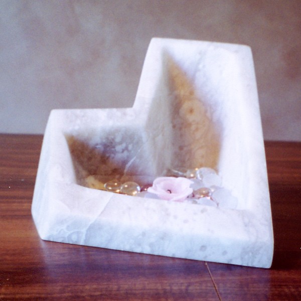 Colorado alabaster sculture on a oak base with a glass bead and a floating rose candle